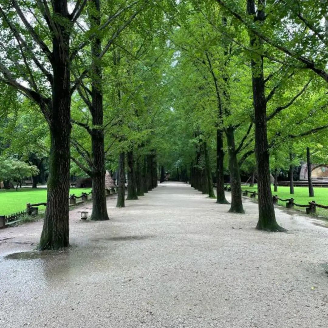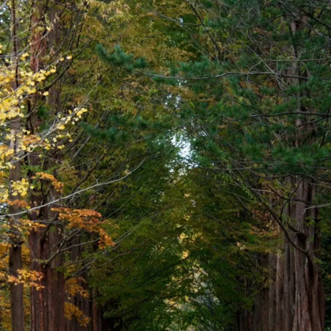 유람선을 타고 접근할 경우에는 남이섬의 대표 조형물인 은행나무길과 잣나무숲이 처음 눈에 들어오며 천천히 시작하는 여유로운 여행 분위기를 느낄 수 있습니다. 물 위를 가로지르며 맞이하는 풍경은 그 자체로 힐링입니다.